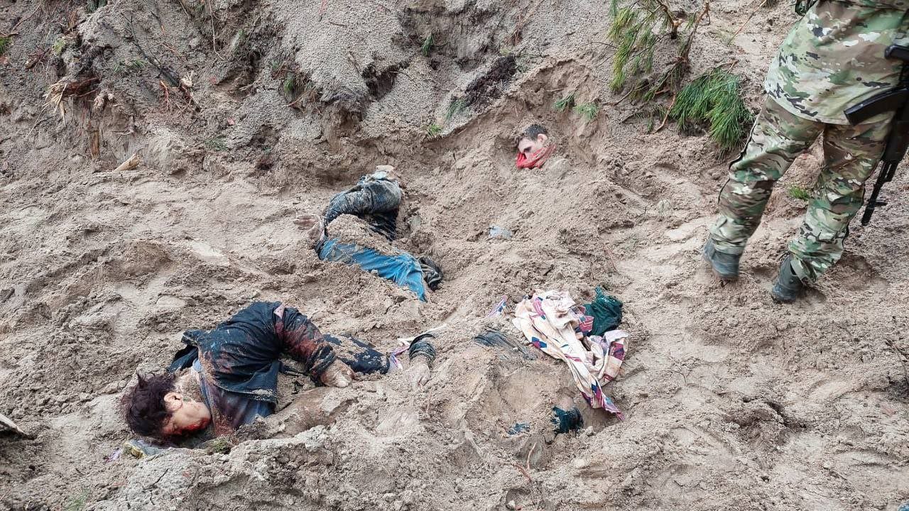 По словам журналистов, некоторых мирных жителей убили выстрелом в затылок. Рядом с одним из тел лежал открытый паспорт гражданина Украины, руки этого человека были связаны за спиной куском белой материи. У еще двух погибших были белые повязки на руках. По словам местных жителей, во время оккупации российские военные заставляли их носить такие повязки, сообщает Русская служба Би-Би-Си.