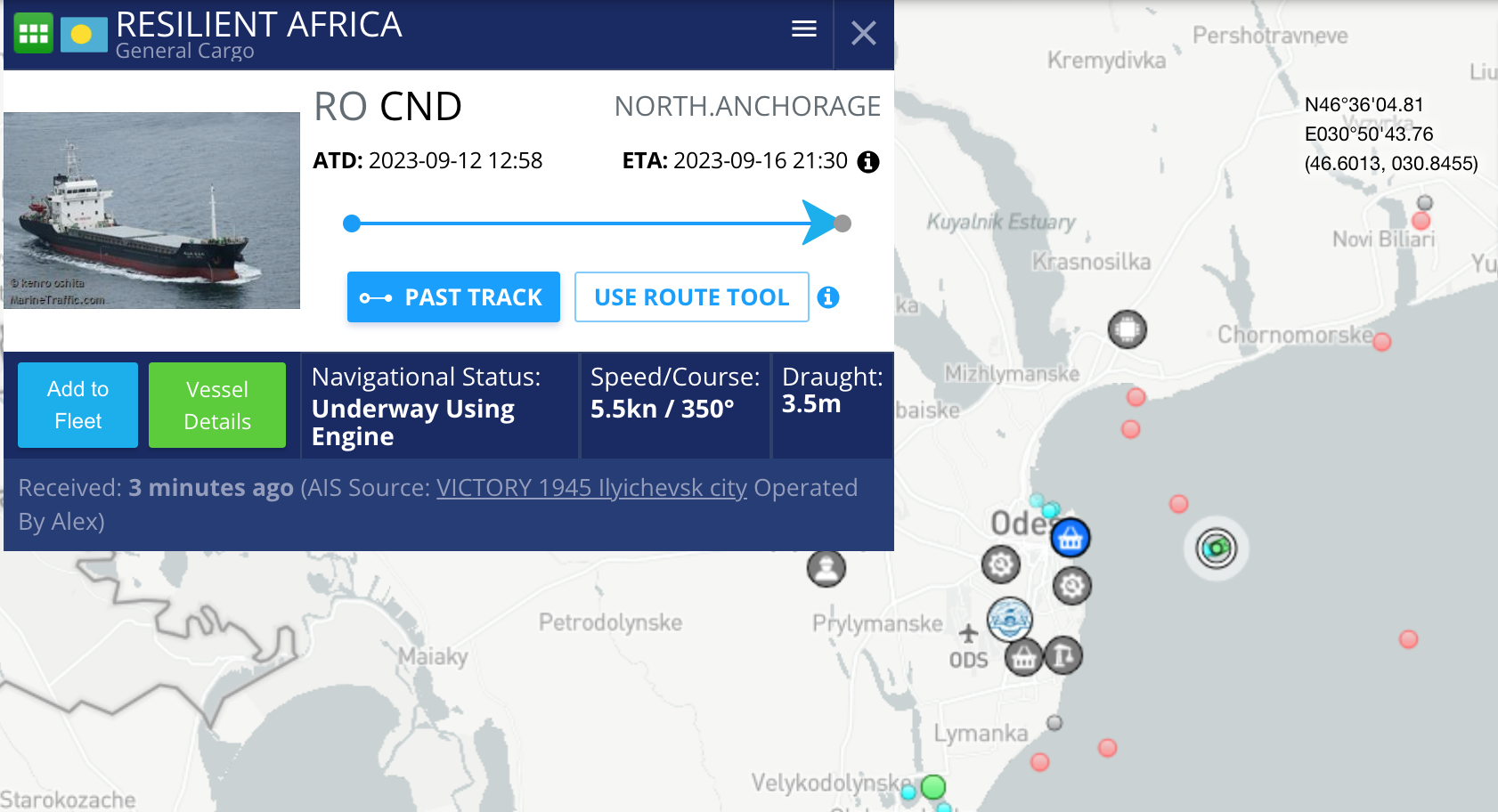 Первые гражданские суда воспользовались временным коридором, установленным ВМС Украины, по направлению к украинским портам — это два балкера Resilient Africa и Aroyat. Судя по данным отслеживания судов, в настоящее время находятся рядом с портом Черноморск, причем Resilient Africa прошел дальше, к Одессе.