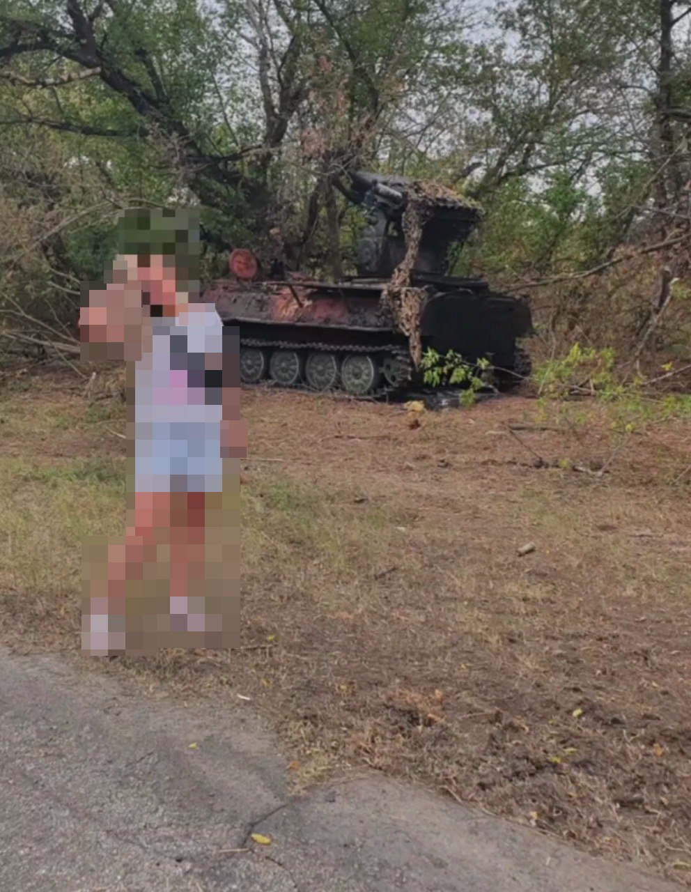 Не до конца ясно, почему вместо покрышек используются матрасы не первой свежести, — возможно, таким образом предполагается обескуражить операторов вражеских дронов.