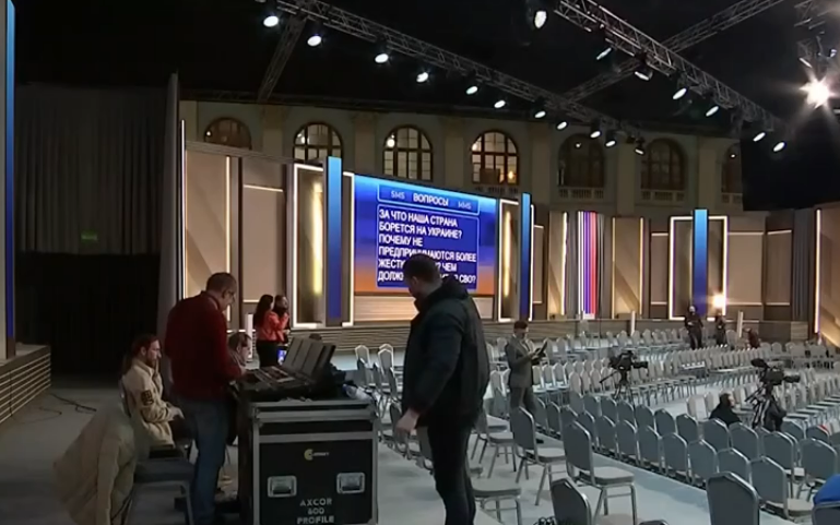 В репортаже «Первого канала», посвященном подготовке к большой пресс-конференции Владимира Путина, показали несколько вопросов, присланных жителями России. В одном из сообщений, попавших в кадр, война в Украине названа войной, а не «специальной военной операцией».