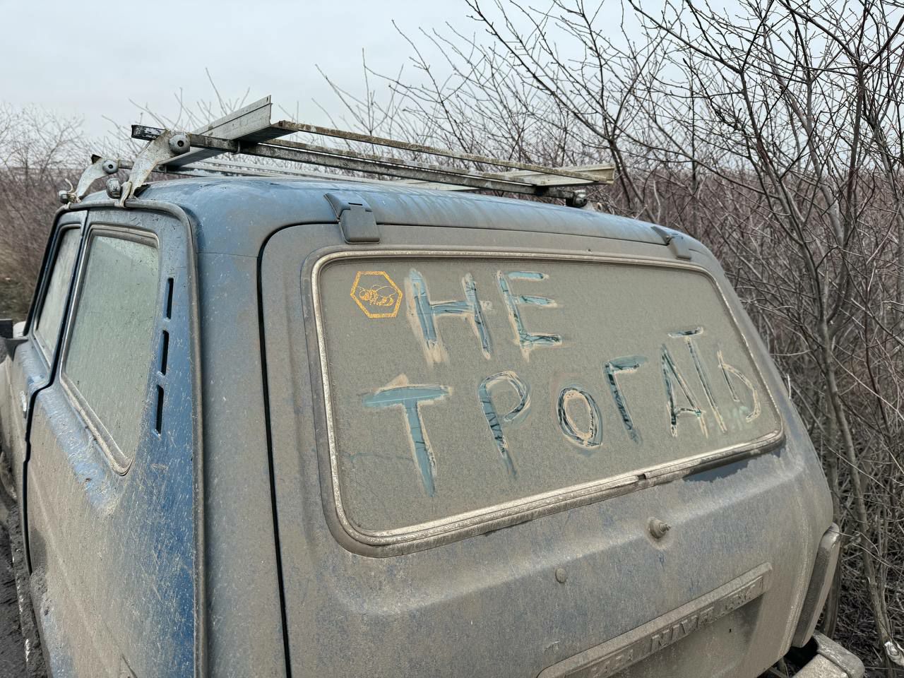 Проблема иллюстрируется «Нивой» на обочине дороги с характерной надписью на грязном стекле «НЕ ТРОГАТЬ». Отмечается, что виной всему — отсутствие ремонтных баз и конструктивного подхода к проблеме нехватки транспорта на фронте.
