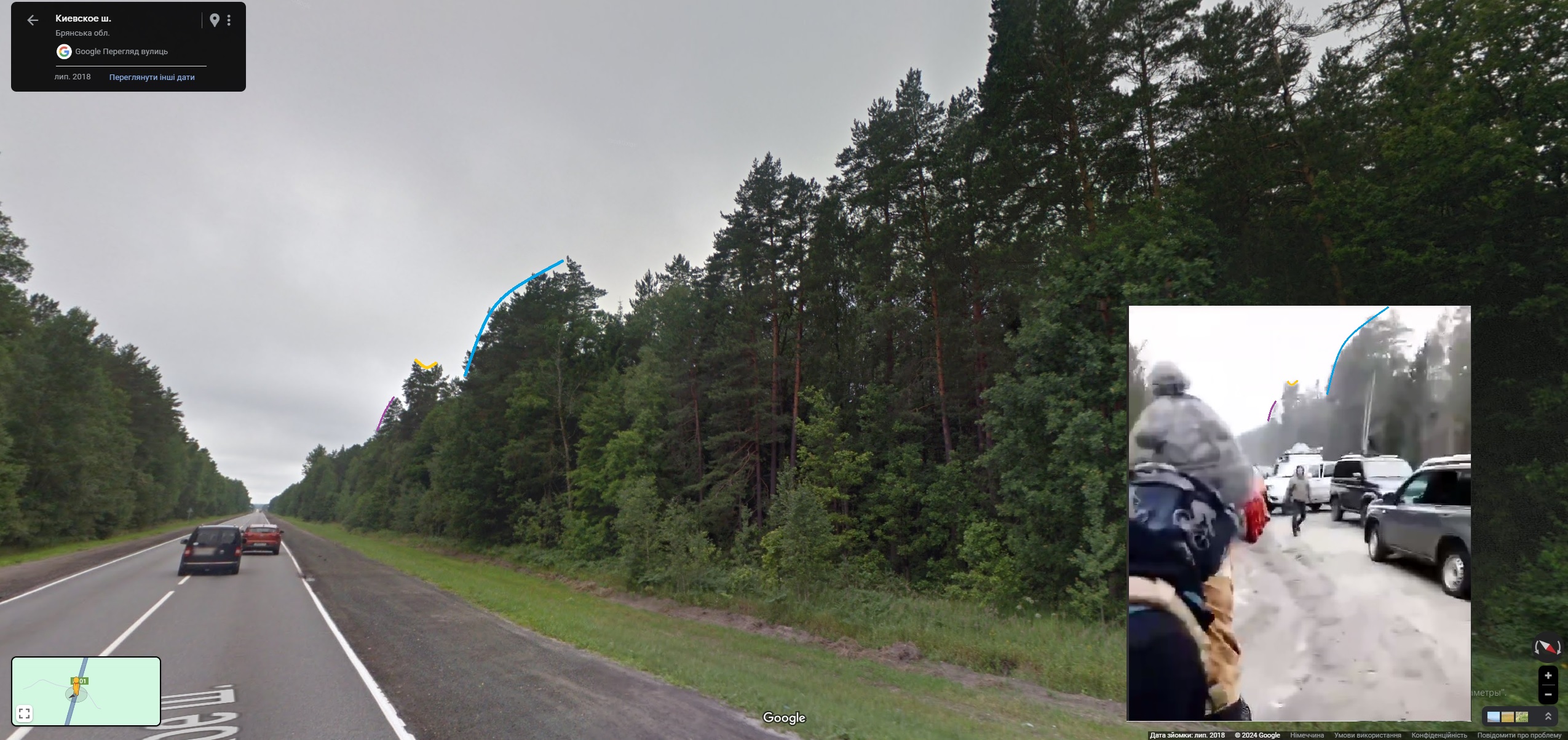 Видео снято недалеко от поселка Коммуна в Навлинском районе Брянской области, его геолоцировал один из участников сообщества GeoConfimed. Поселок находится рядом с деревней Хацунь, о которой сообщал Хинштейн, рассказывая про задержание.