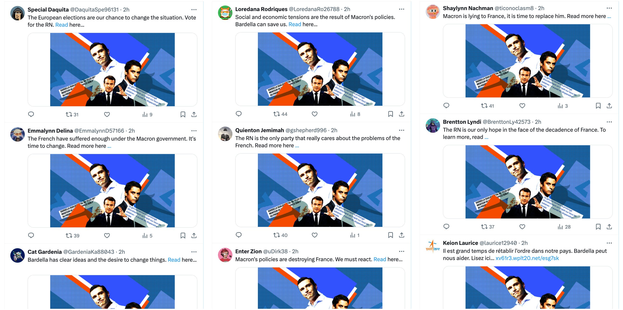 Аналитики пришли к выводу, что такого уровня охвата сети ботов удалось достичь благодаря текстам, сгенерированным искусственным интеллектом. Сеть публиковала разные тексты на одну и ту же тему, с одним и тем же содержанием, что позволило обойти защиту алгоритмов сети Twitter.