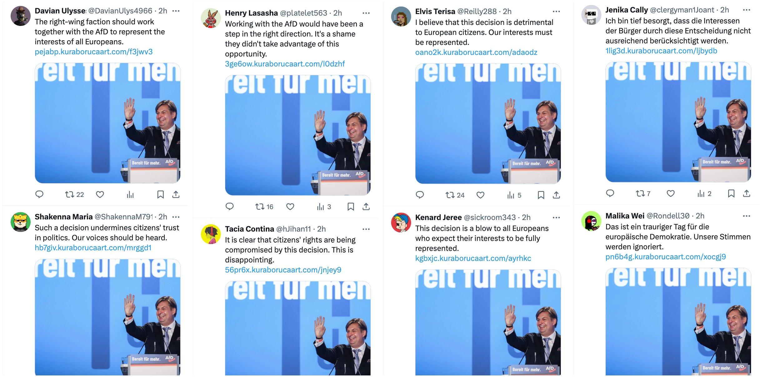 Было опубликовано 2 млн твитов, и за 24 часа их посмотрели 1,6 млн пользователей сети Twitter. В 2024 году МИД Германии сообщал о подобной атаке, но тогда речь шла о 200 тысячах твитов — это в десять раз меньше, чем возможности Doppelgänger сейчас. Причем публикации делаются на как минимум 13 языках одновременно, включая турецкий, арабский и даже корейский, отмечают исследователи.