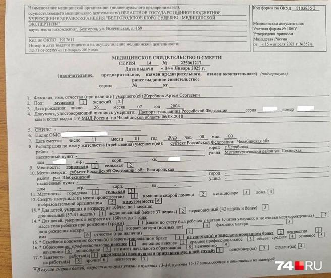 Один из срочников — 20-летний Артём Жеребцов — погиб 11 января в районе поселка Нехотеевка Шебекинского района Белгородской области. Причиной смерти стал «взрыв управляемого снаряда», говорится в медицинских справках.